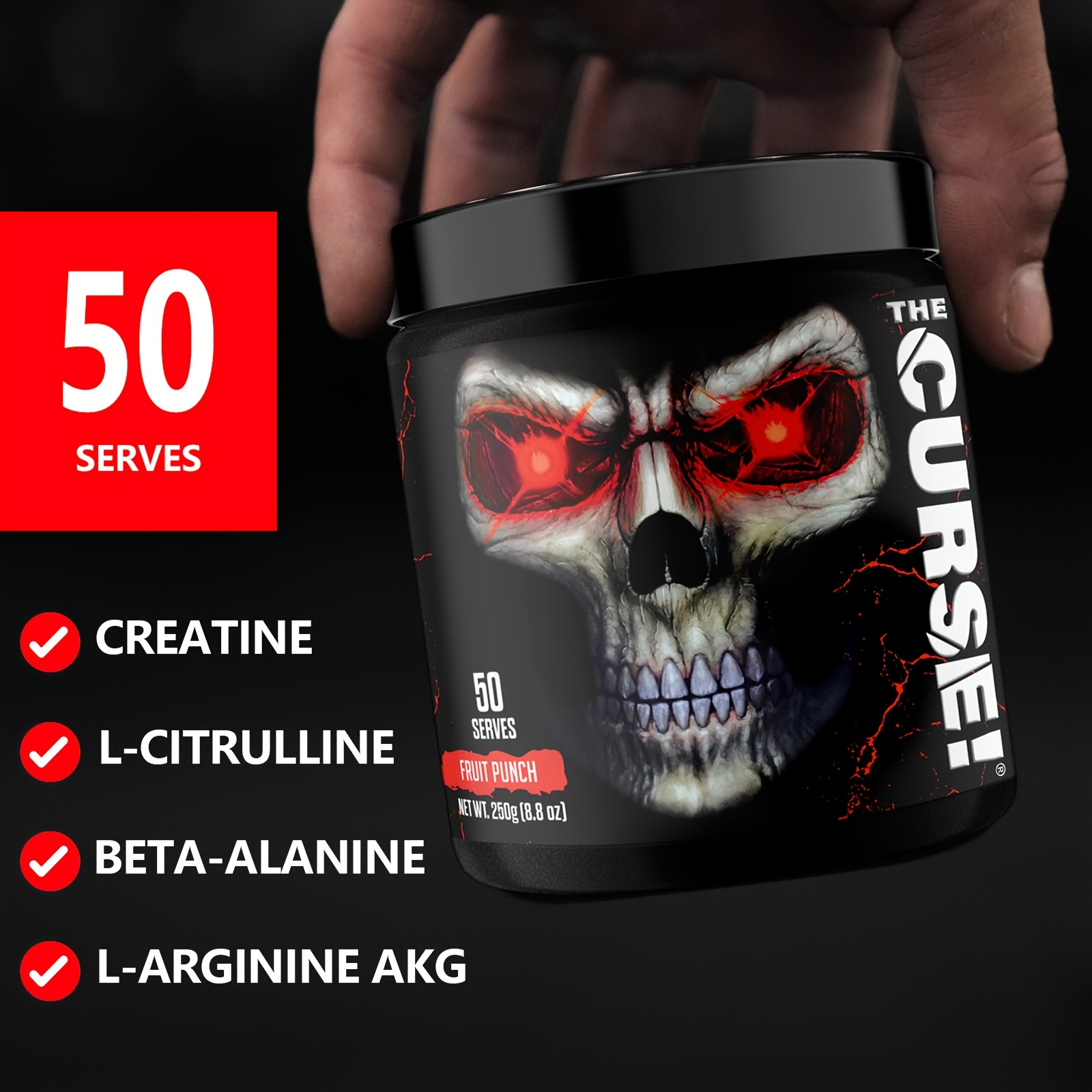 50 Servings Energy + Focus JNX SPORTS The Curse! Powder | Caffeine, Beta-Alanine, Creatine & L-Citrulline - Fruit Punch for Men & Women