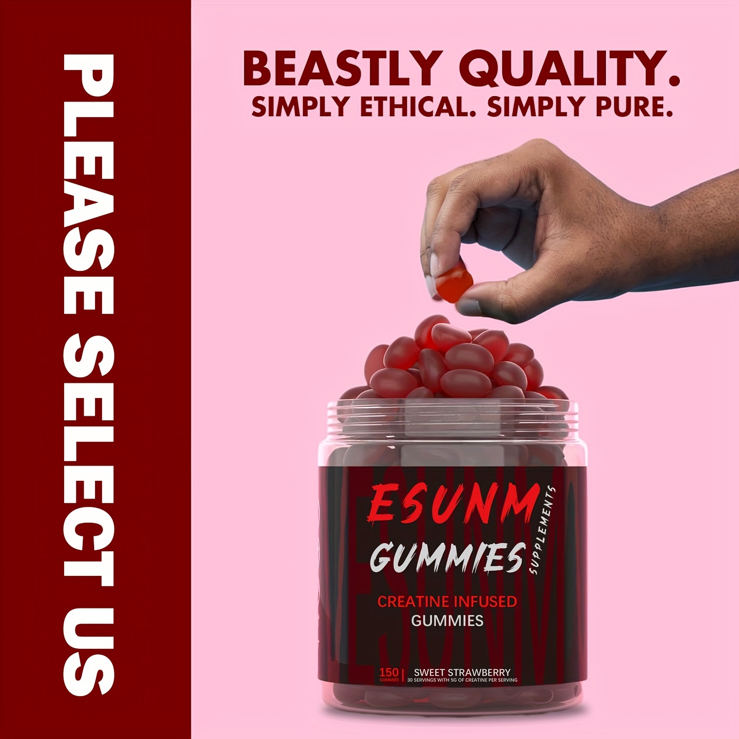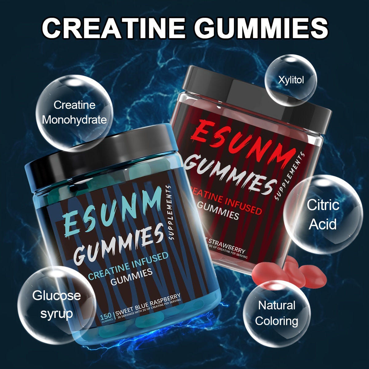 Creatine Gummies with 5g Creatine per Serving, Low-Calorie, Sugar-Free, Blueberry or Strawberry Flavor (150 Gummies per Bottle)