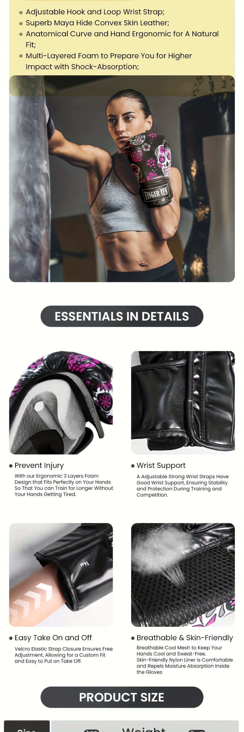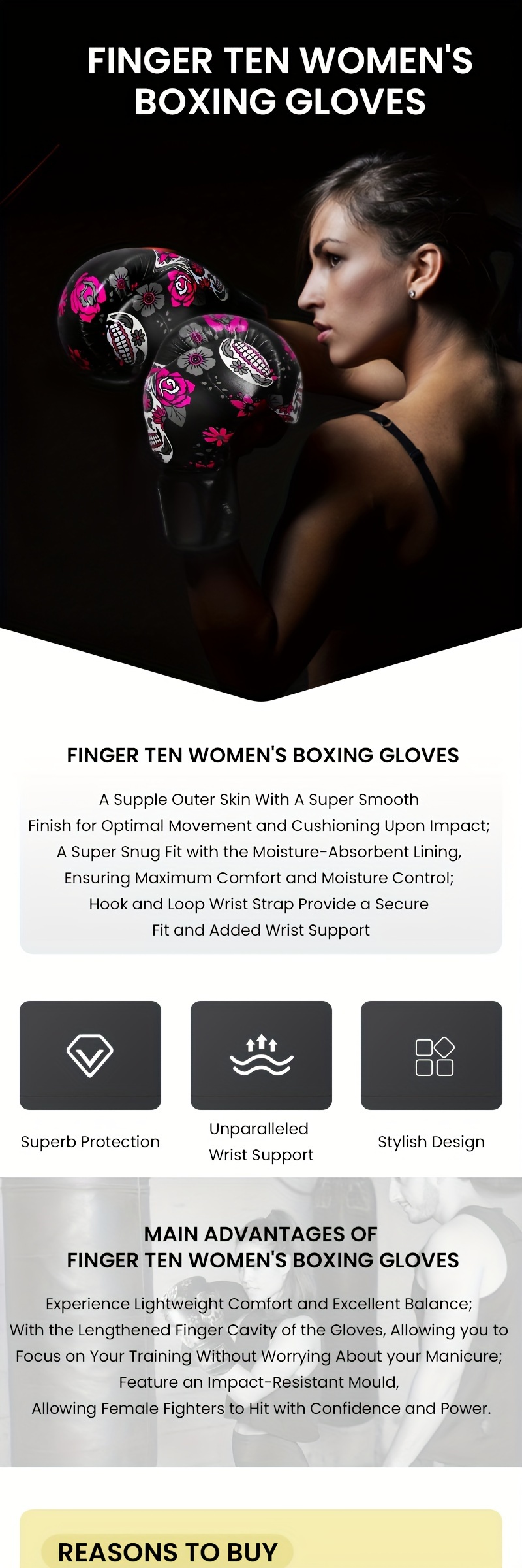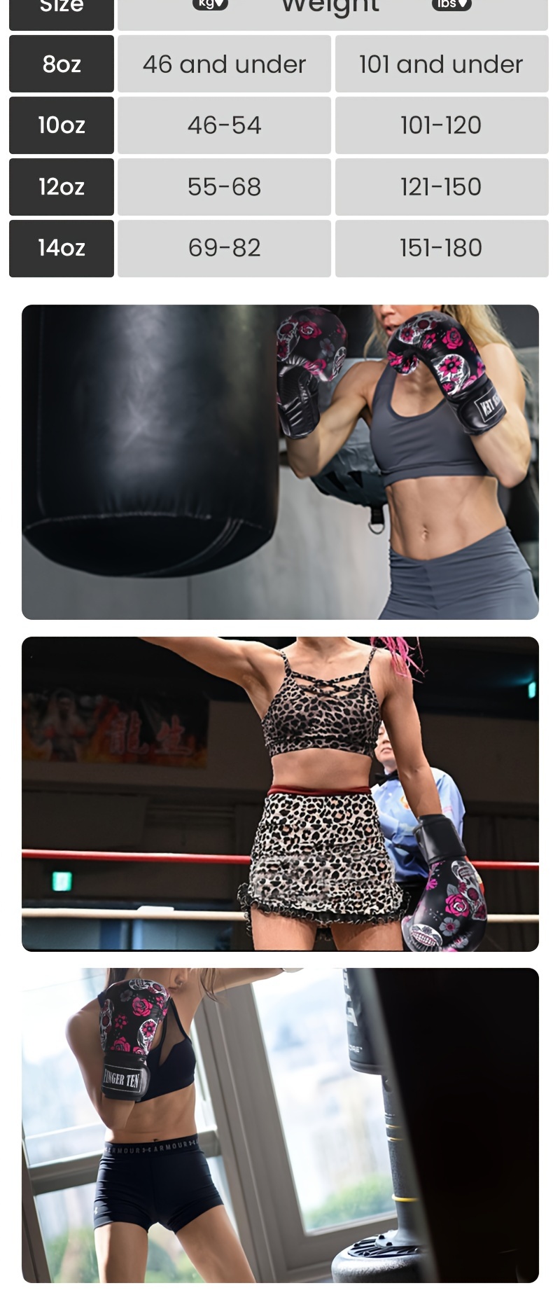 FINGER TEN Boxing Gloves Women Punching Sparring Kickboxing MMA Training Heavy Bag Glove Black Leather 8 10 12 14 oz for Womens